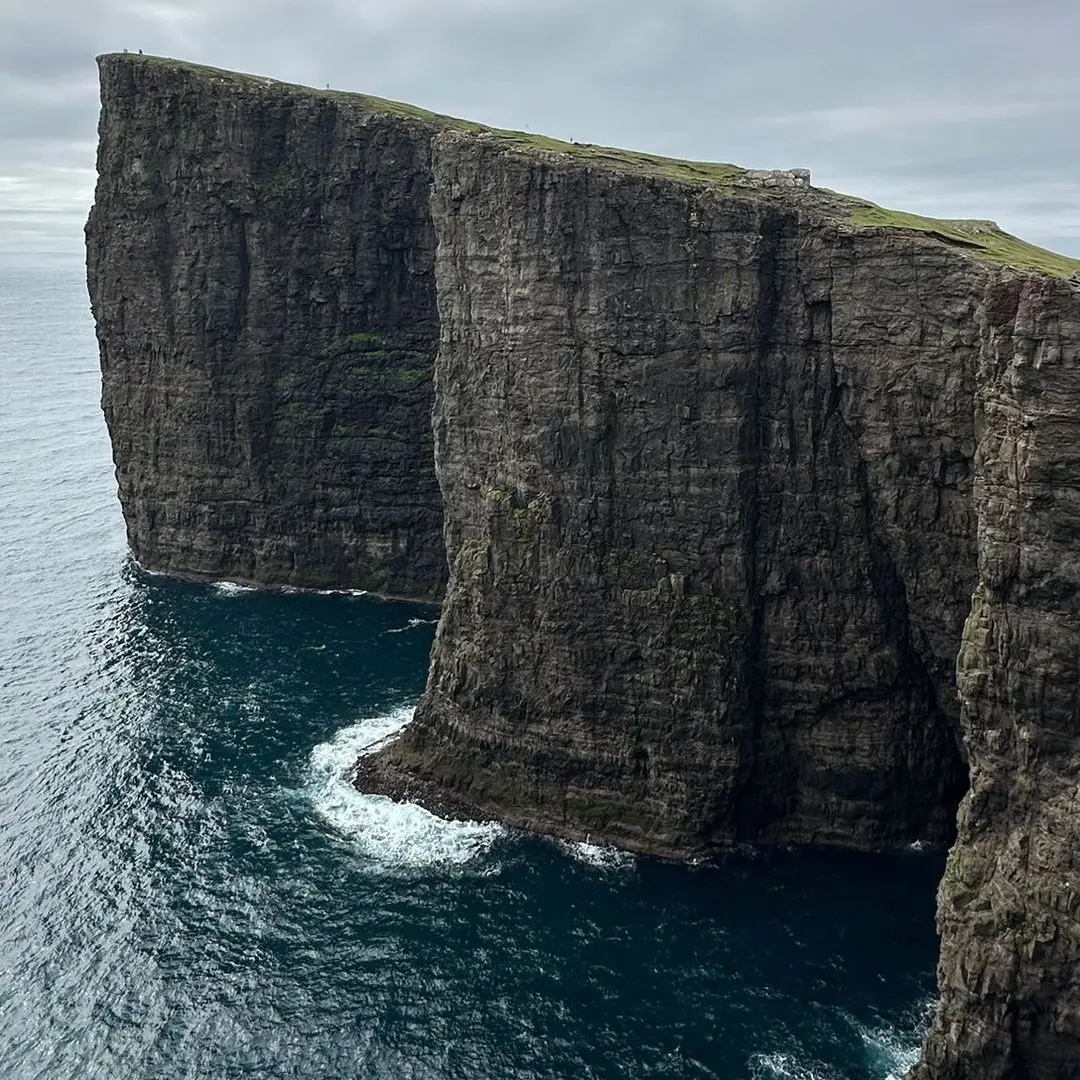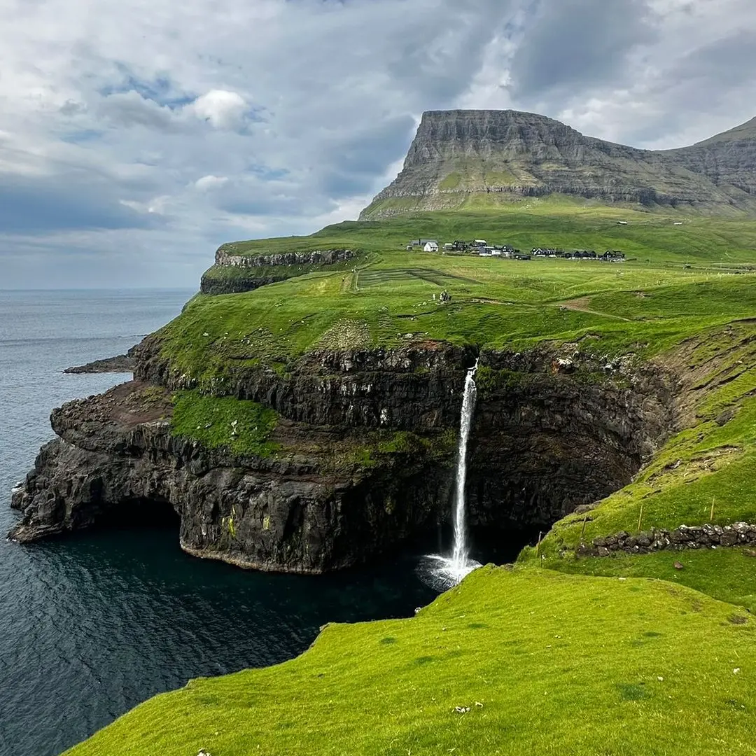 Zobaczymy Trælanípan (Slave Cliff) & wodospad Bøsdalafossur - wodospad spływający po klifie wprost do Oceanu.