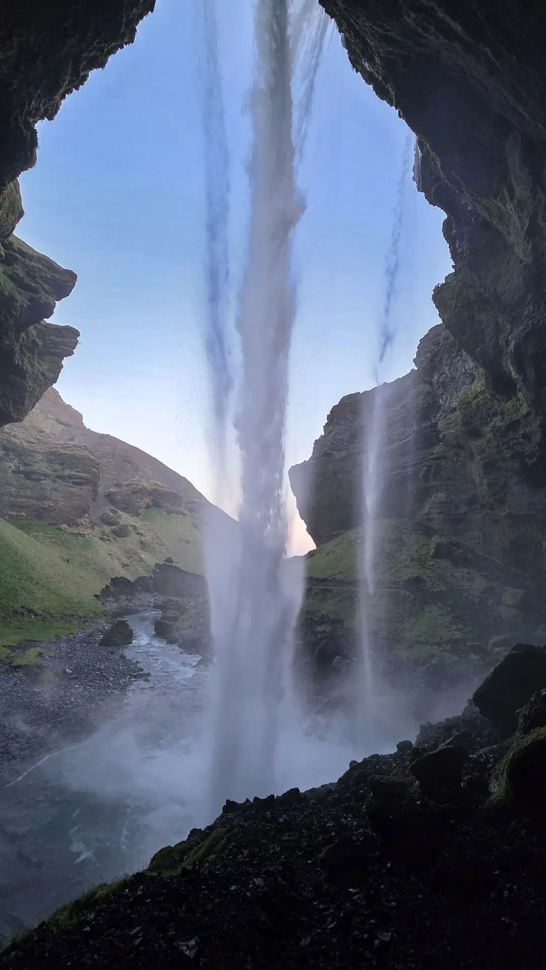 Zaczynamy od Seljalandsfoss - jednego z najbardziej rozpoznawalnych, gdzie można wejść za ścianę wody i spojrzeć na świat przez kurtynę wody.