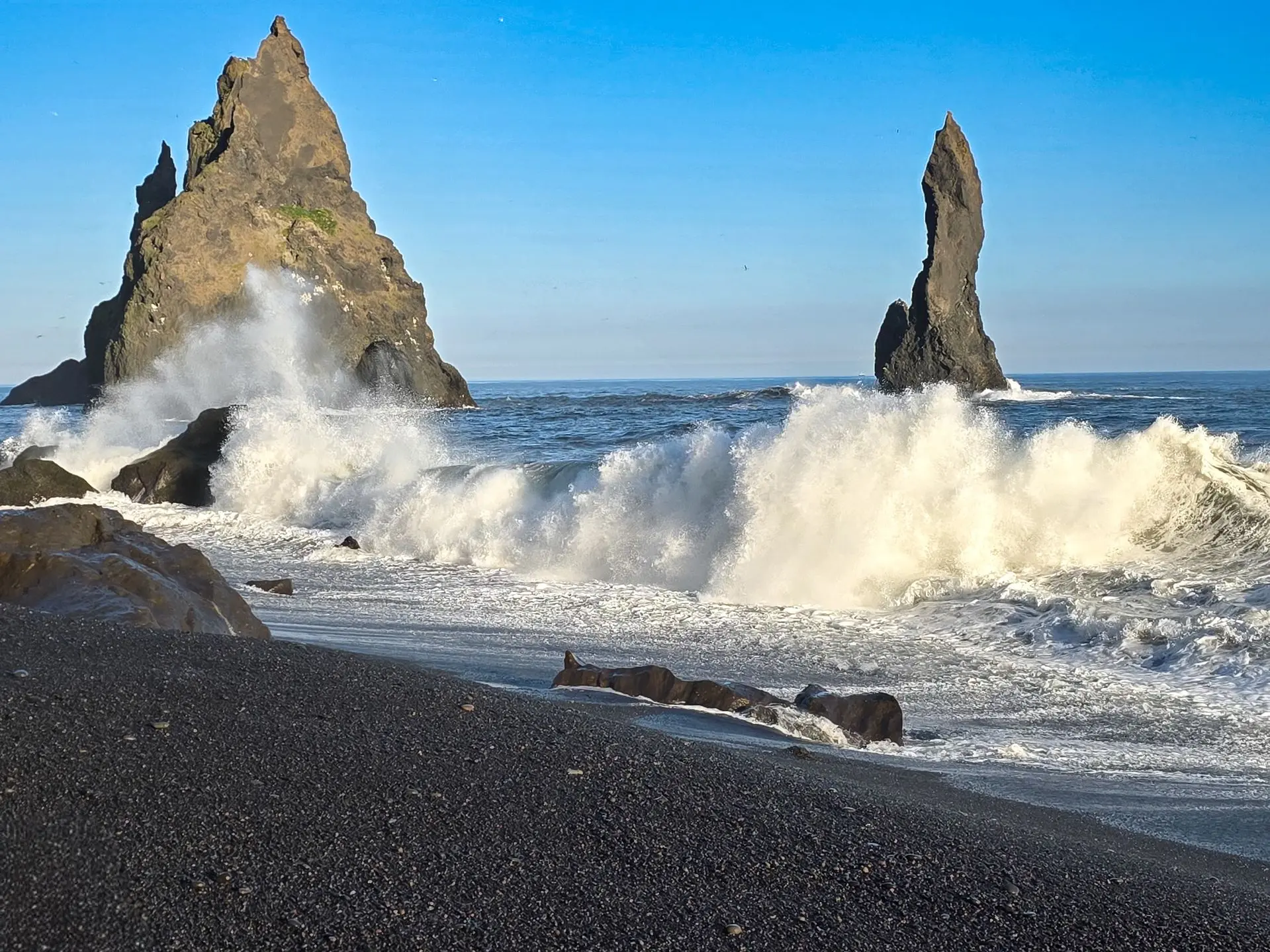 Ten dzień spędzimy w rejonie Vik i Myrdal - jednej z najbardziej znanych wiosek na południu. Zaczniemy od wizyty na słynnej czarnej plaży Reynisfjara, gdzie ciemny piasek kontrastuje z białą pianą fal Atlantyku.